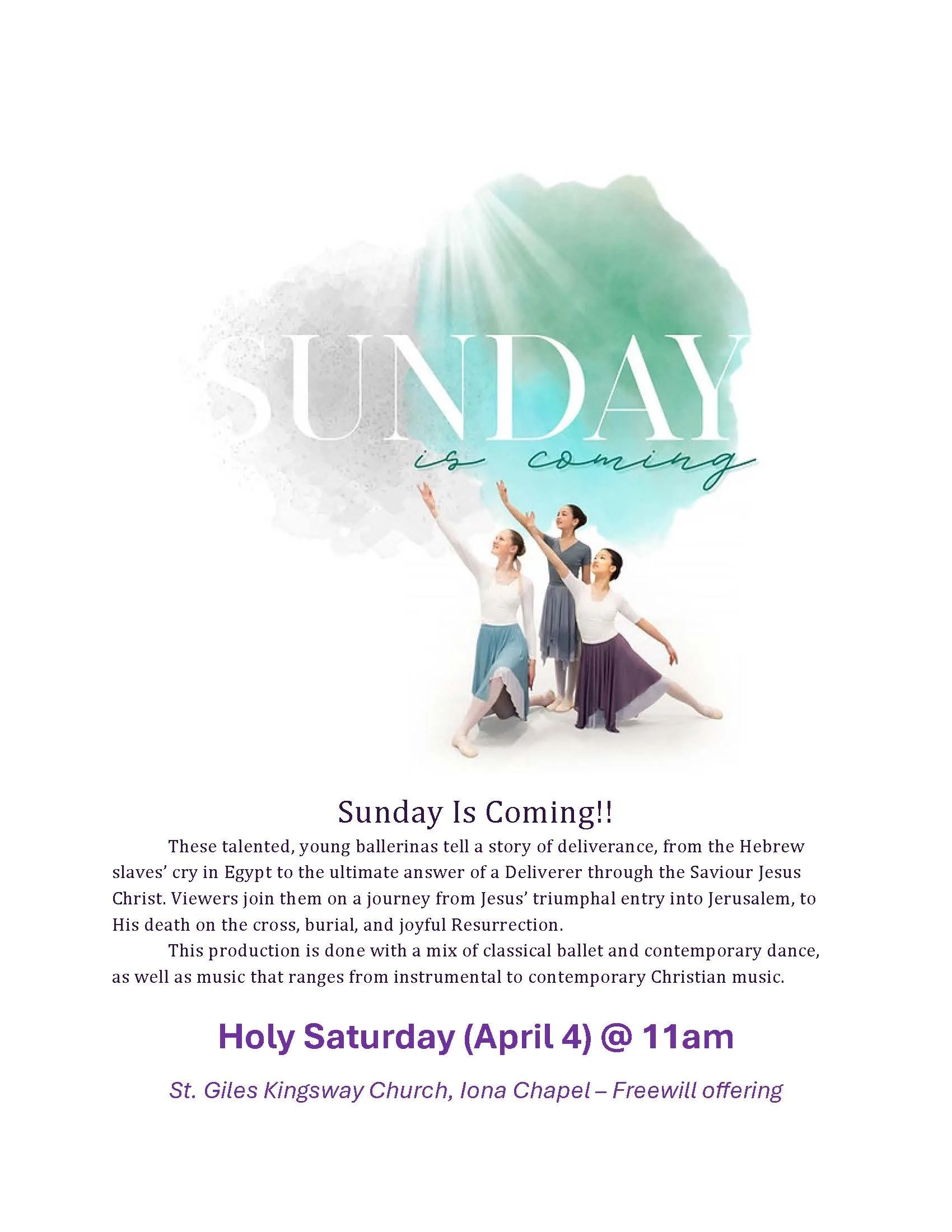 Youth Ballet Performance - Sunday is Coming - the Soli Deo Gloria School of Dance and the Arts - 11:00 am - Iona chapel