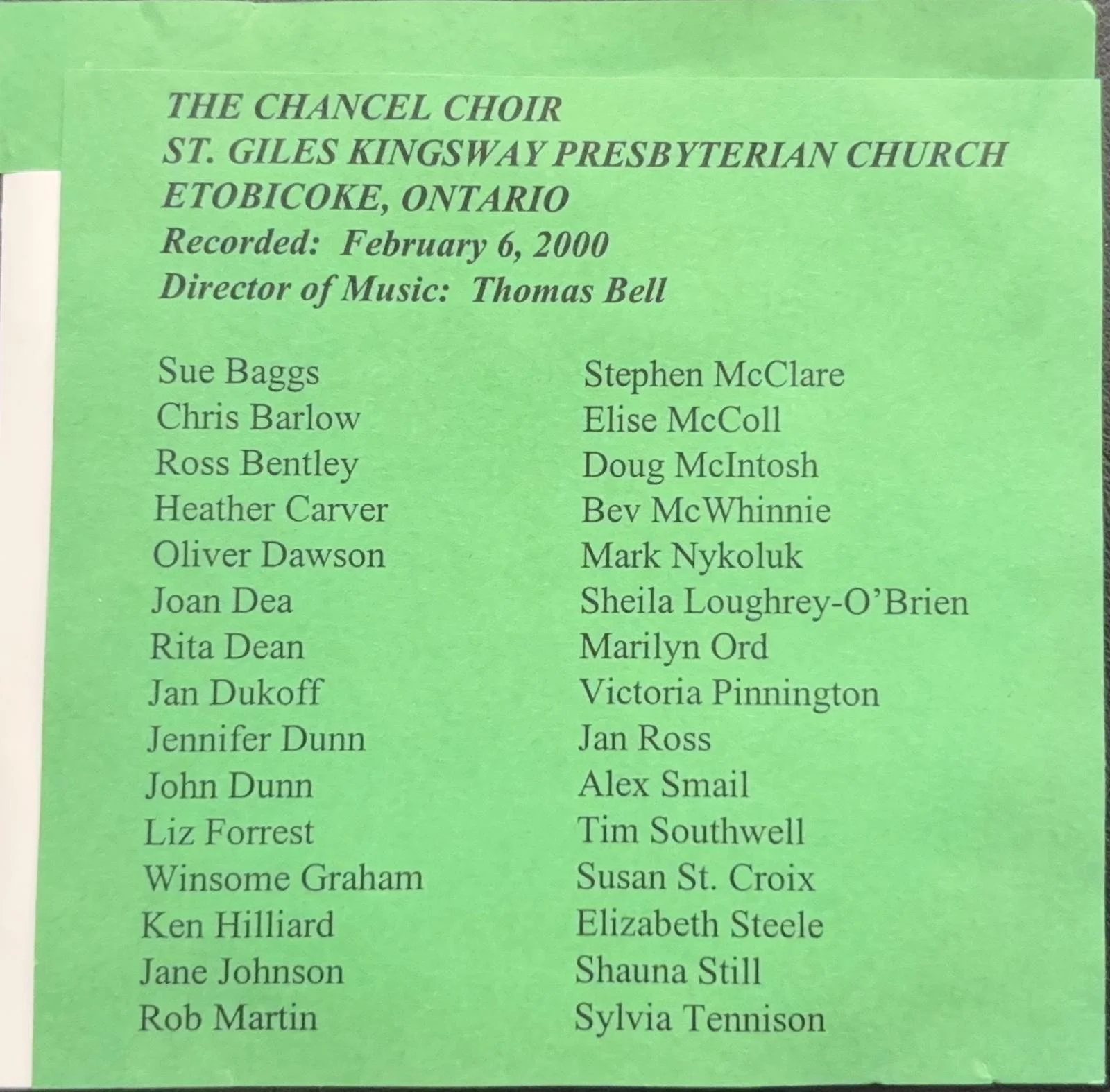 Director of Music: Thomas Bell